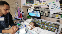 The boy’s father, Ali Hassan, pleads authorities to allow his wife to see dying child, Abdullah Hassan