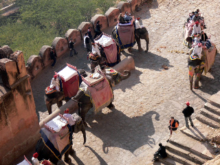 are probably THE most important social occasion for Indian families. December is wedding season. In Surat, there were literally dozens of weddings taking place each and every day for weeks. Families will typically rent out a big hall or open space specially designed for weddings. Professional planners handle all the details -- lighting, food, decorations, food, seating, and, of course, the food. The wedding ceremonies are usually daylong rituals that the bride and groom and their parents have to endure and nearly everyone else ignores. But that's the fun part. Since everyone in the extended family usually come to these events from every nook and cranny, weddings are occasions for family reunion as much as they are to celebrate matrimony. So while the bride and groom are reciting Sanskrit shlokas, getting incense smoke in their eyes, and trying to stay focused on the next part of the seemingly endless rituals, the rest of us are eating, laughing, gossiping, taking pictures, and generally goofing off. At one point during the day, two strangers paid us a visit. They were dressed in saris, fancy shoes, and gold jewelry -- typical wedding attire that any woman might wear. But there was something a bit odd about the way the two strangers walked and talked. These were transvestites -- hijras. They were at the wedding to collect a fee for bringing good luck to the newlyweds. All over India, hijras show up at various auspicious occasions -- weddings, the birth of children, birthdays -- to bring fortune to all in attendance. And for that service, they demand a fee. The two at our wedding got their fee and someone made them write their signatures on a pillar near the entrance so that other hijras wouldn't come to demand more good luck payments. The next day we were off on our sightseeing tour. My brother's wife was visiting India for the first time so we had planned a route many first-time visitors take. We started in Delhi, the nation's capital, then went to the cities of Agra (to see the Taj Mahal), Jaipur, and Udaipur. In Udaipur, there is a very old palace that once belonged to the local maharajah. It's known as Amber Fort. It's perched on the side of a mountain overlooking the city and the valley beyond. The popular route up to the fort is along a winding cobblestone road. Local entrepreneurs have taken full advantage of this "exotic" attraction and have developed a decent business providing rides to the fort on the backs of lumbering elephants. As the number of tourists increased, the elephants were forced to take more trips up the hill per day and to carry more passengers per trip. Several years ago, reports surfaced that the drivers were trying to get elephants to move up the hill faster by prodding and beating the animals with sharp iron pokers. The animals were not happy. They seemed to be crying, in fact. Tourists began to complain. Animal rights activists filed protests with local government officials. One day, one of the elephants apparently had had enough and began to run amok. With passengers aboard, she began wildly swinging her head and trunk around and began running full tilt down the hill. The incident apparently scared everyone in the Amber Fort elephant ride industry because now, the number of times elephants can go up the hill is limited to six per day and they can carry only two passengers per ride. And we didn't see iron rods in the hands of the elephant handlers. Everyone -- people and animals -- seems a lot happier. No trip to India can be called a success unless there is ample time for shopping. For most people, shopping in India means carpets, clothes, furniture, gold jewelry, and the like. I have a more esoteric interest. I am always on the look out for interesting renditions of Ganesh, the elephant-headed god of intellect, education, and wisdom, as well as the remover of obstacles. He is the son of Shiva and Parvati and, according to mythology, the scribe who wrote down the Mahabharata as narrated to him by the holy man Vyasa. At a small and dusty restaurant at the side of the road taking us from Delhi to Agra, a man was selling figurines -- mainly animals, but also a few gods and goddesses from the Hindu pantheon. Of course, I carefully looked through the collection looking for interesting statuettes of Ganesh. As the others waited impatiently, my persistence was rewarded when I found a tiny inch-high papier-mâché figure of Ganesh. He is sitting astride a bird in flight and playing a sarod, a type of musical instrument. His trunk is pointing upward rather than down and curving to the side as it usually does. It's the most unusual Ganesh figure I've ever seen. Of course, I bought it and added what has to be a one-of-kind rendition of Ganesh to my collection. Later, I found a wooden carving of a standing Ganesh with eleven heads, five extra ones on each side of his face. Jackpot. The things I remember from the five short years I lived in India are fragments and traces. I was a child, of course, and I can never be certain if these are real memories or strands of stories narrated to me over the years that have become what I now think of as my memories. For instance, I'm not sure if I really did smack my pre-school teacher with a ruler before running out the door and across the street to my house, which was just across the lane from the school, or if the story is just family lore. I'm not sure if, on another occasion, an overly maternal monkey was about to swoop me up along with the cookie I was eating and run off into the woods. Luckily, the story goes, I dropped the cookie and the monkey ran off with this bit of food instead of with me! Added to these memories are recollections from the many trips I've taken back to India. Taken all together, they represent what India is to me: bits and pieces of biography revealed, family history retold, adventures experienced, and Ganesh statues found. It's hard to build a complete sense of belonging from bits and pieces. But it seem