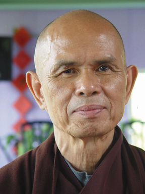 organization for accomplishing a wide variety of humanitarian efforts from rebuilding villages to organizing local agricultural cooperatives. More than 10,000 monks, students and other volunteers worked to restore their country, rallied around the Buddhist causes of nonviolence and compassionate action. Despite his many contributions, Nhat Hanh was considered an enemy of the Vietnamese government. His popularity as an activist for peace threatened their military ambitions, and so when he concluded a peace mission to the U.S. and Europe in 1966 to raise awareness of the suffering of Vietnamese civilians, he found that he was not welcome home. He took the opportunity to continue spreading his message. He spoke with administration officials, gave speeches on college campuses, and was often invited to present the Buddhist viewpoint at many social and political gatherings. Traveling in such circles, it was inevitable that Nhat Hanh would meet America's own foremost leader in nonviolent agitation for human rights. Martin Luther King, Jr. and Nhat Hanh became fast friends and allies, and Nhat Hanh convinced King to speak out publicly against the Vietnam War. Between the two of them, they represented the hopes and dreams of two nations of people torn apart by war, and their unified message was certainly one of the most powerful catalysts for the powerful peace movement that characterized America as the quagmire of a war dragged on. After working closely with Nhat Hanh for a year, King was moved to nominate him for the honor he himself had become the youngest recipient of two years previous: the Nobel Peace Prize. It was such respect from his peers that made Nhat Hanh a natural choice to lead the Buddhist delegation to the Paris peace talks, where he is credited with much of the work necessary to achieve accords between North Vietnam and the United States. As recognition for such achievements on behalf of his homeland, he was invited to return to Vietnam, but he declined in order to continue spreading the word of peace. In fact, spreading the word seems to come naturally to Nhat Hanh, who has written over 100 books in a variety of languages, mostly addressing methods of personal meditation and improvement as the first step to producing a peaceful society. But even a man of such dedication as Nhat Hanh can't traipse the globe forever, and so in 1982 he established Plum Village, a Buddhist community based in France. Much of his time is spent there, running workshops to train others to understand and spread his movement of engaged Buddhism, but establishing a new home has not prevented him from making his presence felt around the world. Nhat Hanh's Plum Village retreat has only about 30 permanent residents, but each year thousands come there to learn from and be inspired by the great man. His guests range from destitute refugees to U.S. Senators, spanning all races, religions, and nationalities. These students go on to spread Nhat Hanh's philosophy of generosity and respect for life around the world. Nhat Hanh himself continues to visit America every other year, where his speeches draw crowds and his words are listened to carefully by leaders who have learned the strength of his vision. But Nat Hanh remains sublimely humble. As he declares in the last of his "fourteen precepts" for engaged Buddhism, 'Do not believe that I feel that I follow each and every of these precepts perfectly. I know I fail in many ways. None of us can fully fulfill any of these. However, I must work toward a goal. These are my goal. No words can replace practice, only practice can make the words." |