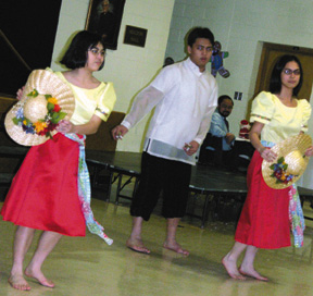 | (Left) Dr. Roger Austria emcees; Filipina medical doctors and other professionals are great chefs; the Subli ("subli" in Ilocano means going back) dance; (bottom) other participants include Ed and Nieva Escall of Madison |
