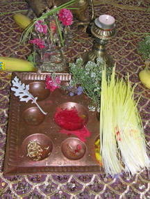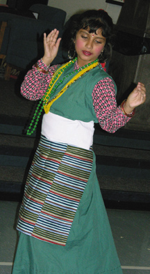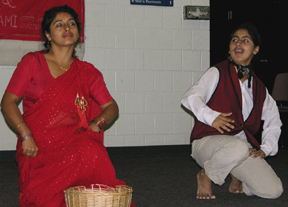 | The first nine days (nawa ratri), the legend says, was the duration of the battle between Durga and Mahisasur; the 10th day was the day the demon was actually slain; and the last five days was for the celebration of this victory. The goddess is regarded as "divine mother" throughout the kingdom of Nepal. Nepalese everywhere prepare for this occasion by cleaning and beautifying their homes. They believe that a beautiful home would invite the visit and blessing of goddess Durga. During nawa ratri, devotees pray to her (and her many forms called devis) for good fortunes. The first day of Dashain is called Ghatasthapana, when kalash (holy water vessel) is placed on the altar. The kalash is filled with holy water and covered with cowdung on to which seeds are sown. A small rectangular sand block is made and the kalash is put in the center. The surrounding bed of sand is also seeded with grains. The Ghatasthapana ritual is performed at a certain auspicious moment determined by astrologers. ... By the 10th day, the seed will have grown to five or six inches of long yellow grass, called Jamara. It is bestoweed by the elders atop the heads of youth during the last five days when the tika is put on. The Jamara is taken as a token of Goddess Durga as well as the elders' blessing. -(www.wikipedia.com) The 10th day is the Dashami, the day the Nepalese take tika and Jamara from elders to receive their blessings. Family members and relatives come together to pay respect to their elders, share stories, and enjoy their togetherness. This was exactly what the Local Nepalese community in Madison did, and more. Friends and guests from other cultures shared an important Nepali tradition and watched a cultural program highlighted by a humorous skit (bottom right). Nepali food and music were aplenty, and the feeling of being at home away from home was on everyone's face. |